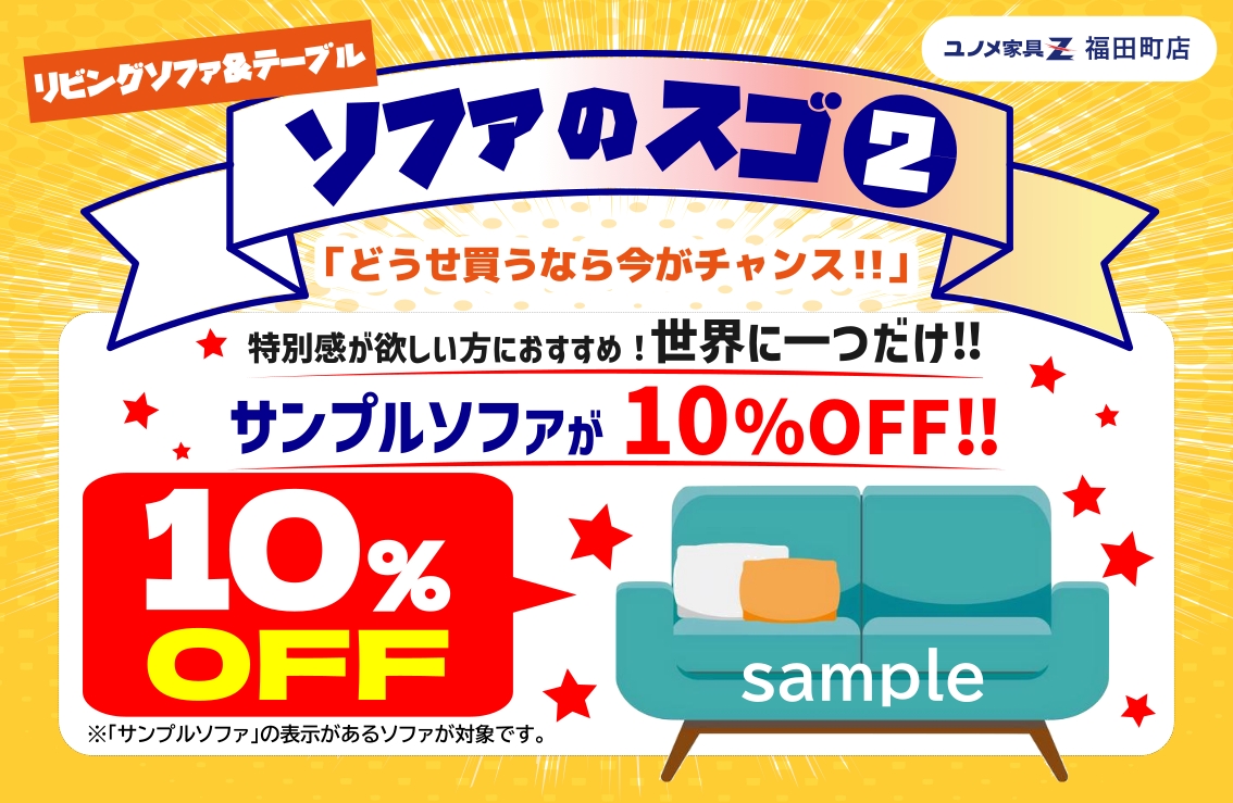 ユノメ家具Z福田町店 4/4(土)スタート! 衝撃の「凄いSALE!」開催! 福田町店が本気を出しました! 今回も「凄いSALE!」のためだけに、特別なご奉仕品をドッサリ確保! 🛋️ 安さの理由は、見…