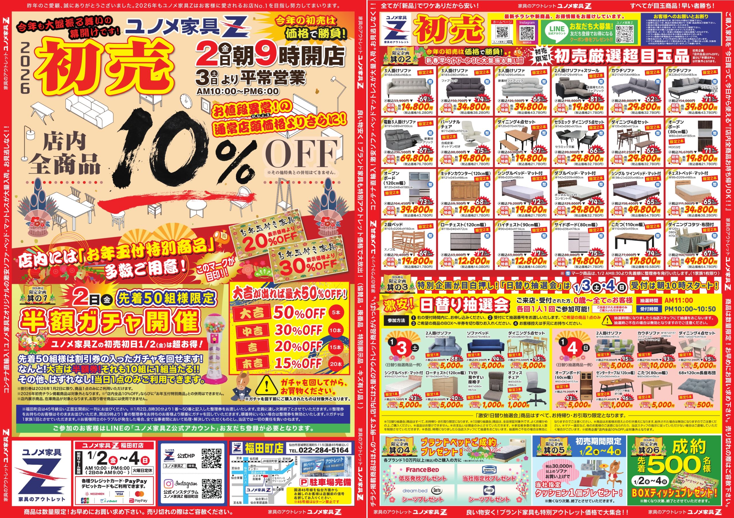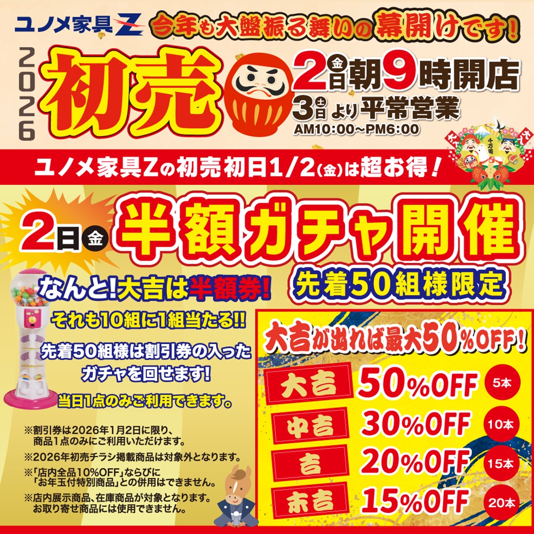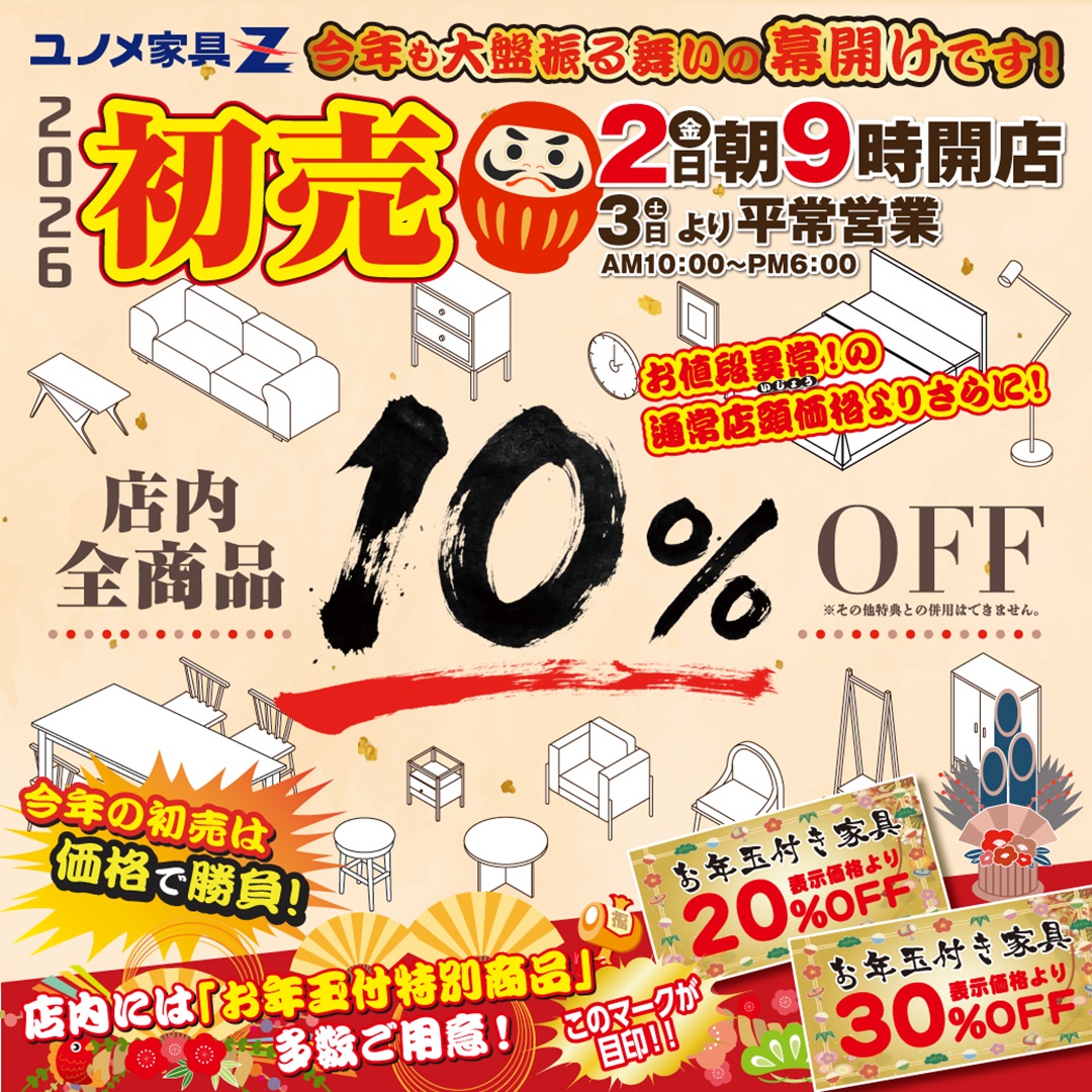 ユノメ家具Z福田町店の初売は、今年も“価格で勝負”。