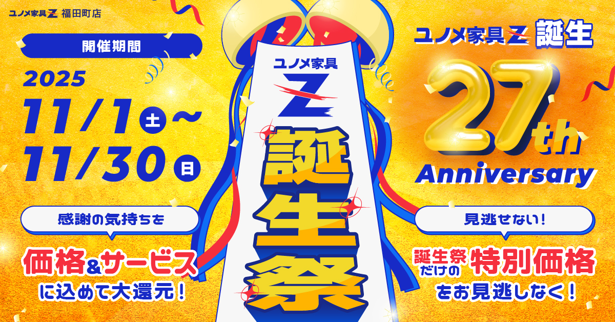 衝撃!な凄いセール開催!家具選びはユノメ家具Zで決まり!