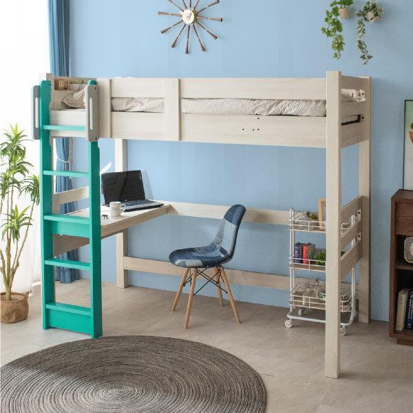 NEWロフトベッドデスク付きのシングルサイズロフトベッド、宮棚、二口コンセント付き